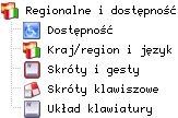 Ustawienia językowe. W Kraj/region i język możemy ustawić język KDE. Pliki językowe są dostępne w pakietach kde-i18n (dla Polskiego kde-i18n-pl). W zakładce Układ Klawiatury możemy też ustawić polski układ klawiatury.