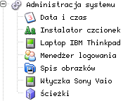 Tutaj mamy ustawienia systemo, dostępne głównie dla roota. Data i czas - ustawiamy datę i czas systemu. Instalator Czcionek - dodajemy nowe czcionki. Jeżeli zrobimy to jako root to będą one dostępne dla wszystkich, jeżeli jako user to tylko dla tego usera. Warto dodać np. verdanę, tahomę, ariala i timesa z MS Windows. Menedżer logowania - wygląd menadżera logowania KDM (tło, czcionka itd.).