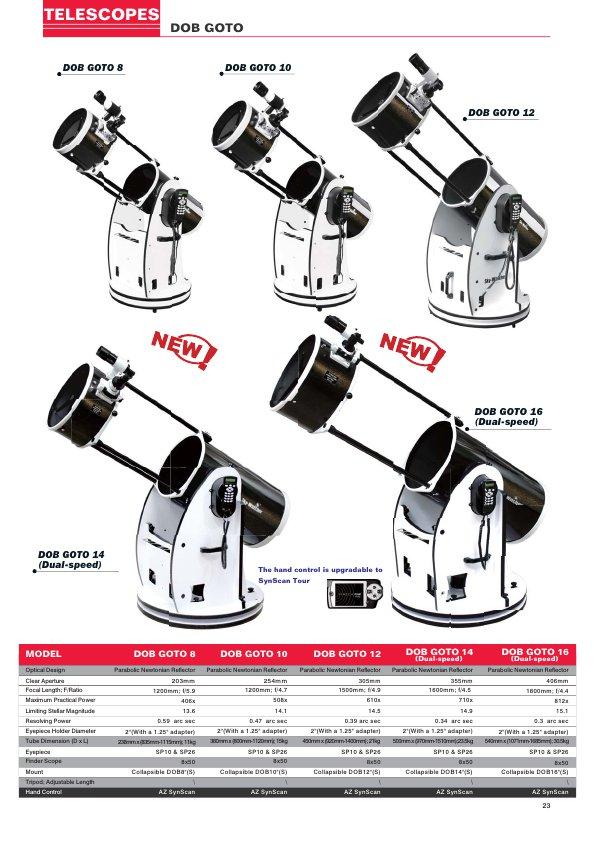 Część nowych produktów SW przewidzianych na ten rok już znamy, choć te najciekawsze są jak na razie tylko zapowiedziane. Niezależne guidery SynGuider czy NexGuide pod marką Celestrona są już na rynku i większego zainteresowania raczej nie wzbudziły. Na rynek trafią też składane Dobsony 14 i 16" wyposażone w GoTo (lub bez, do wyboru). 16" wersja to 406/1800 przy wadze 30,5 kg. 14" waży zaledwie 23,5 kg.