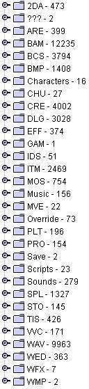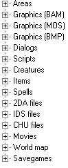 Jest to lepiej zorganizowany program, łatwiej szuakać i poprawnie eksportują się pliki (z zachowaniem rozszerzeń). Za pierwszym uruchomieniem program poprosi o ścieżkę do pliku chitin.key gry. Po wskazaniu program uruchomi się do końca. Menu mamy podobne: