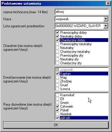 - "Nie można obejść ograniczeń" - nie możesz zrobić podklasy łamiącej dotychczasowe zasady - paladyna elfa lub paladyna człowieka z możliwością dwuklasowania z kimś! Tak samo z charakterem i ograniczeniami rasowymi.