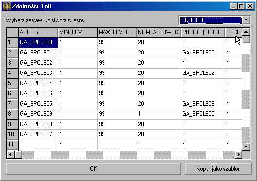 - Kolejny formularz - zdolności specjalne. Ten formularz to centrum podklasy, od niego zależą wszystkie jej zdolności "dodatkowe"