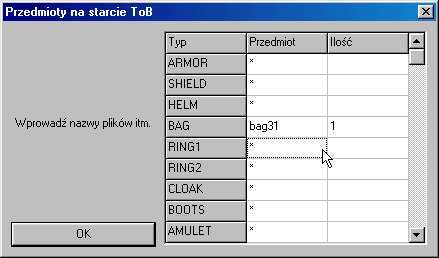 - Przedmioty na starcie ToB - gdy zaczynamy nową grę od ToB: