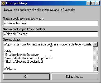 - Program poprosi o wskazanie katalogu do którego wrzuci pliki podklasy po jej stworzeniu. Radzę na wszelki wypadek nie zaznaczać katalogu Override BG II :P Gdyby coś się zwaliło... zwaliłoby i grę!