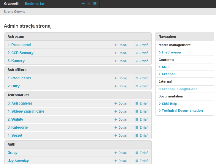 - Przejrzyj grappelli/settings.py i zmodyfikuj ustawienia jeżeli trzeba