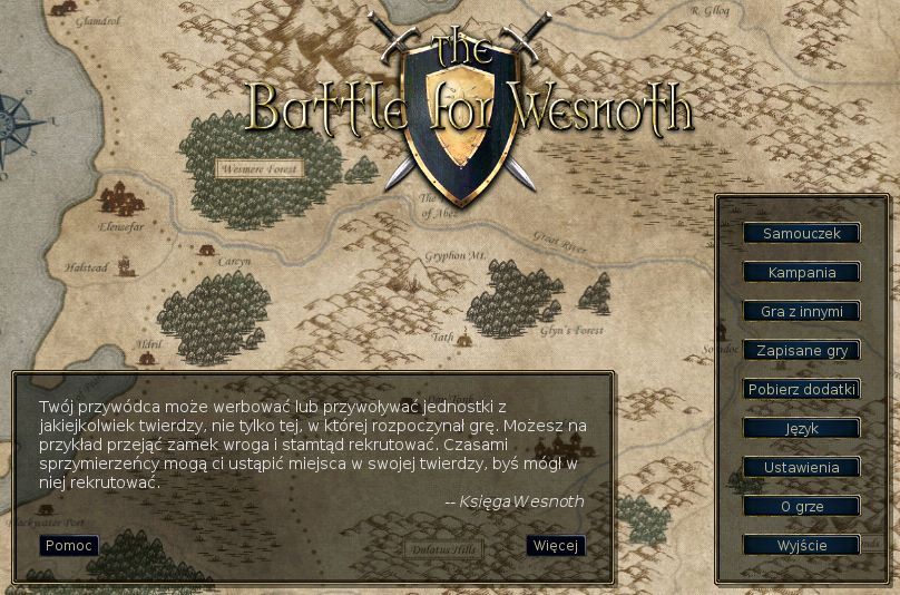 Po uruchomieniu Wesnoth pojawi się taki oto interfejs: