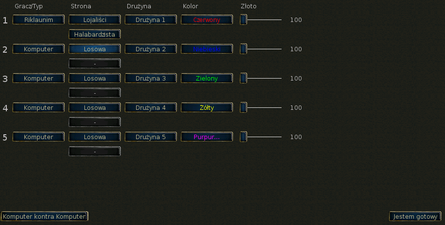 W przypadku gry przez sieć czy ludzie kontra komputer tworzenie rozgrywki składa się z dwóch etapów. Pierwszy to wybór mapy i ustawień: